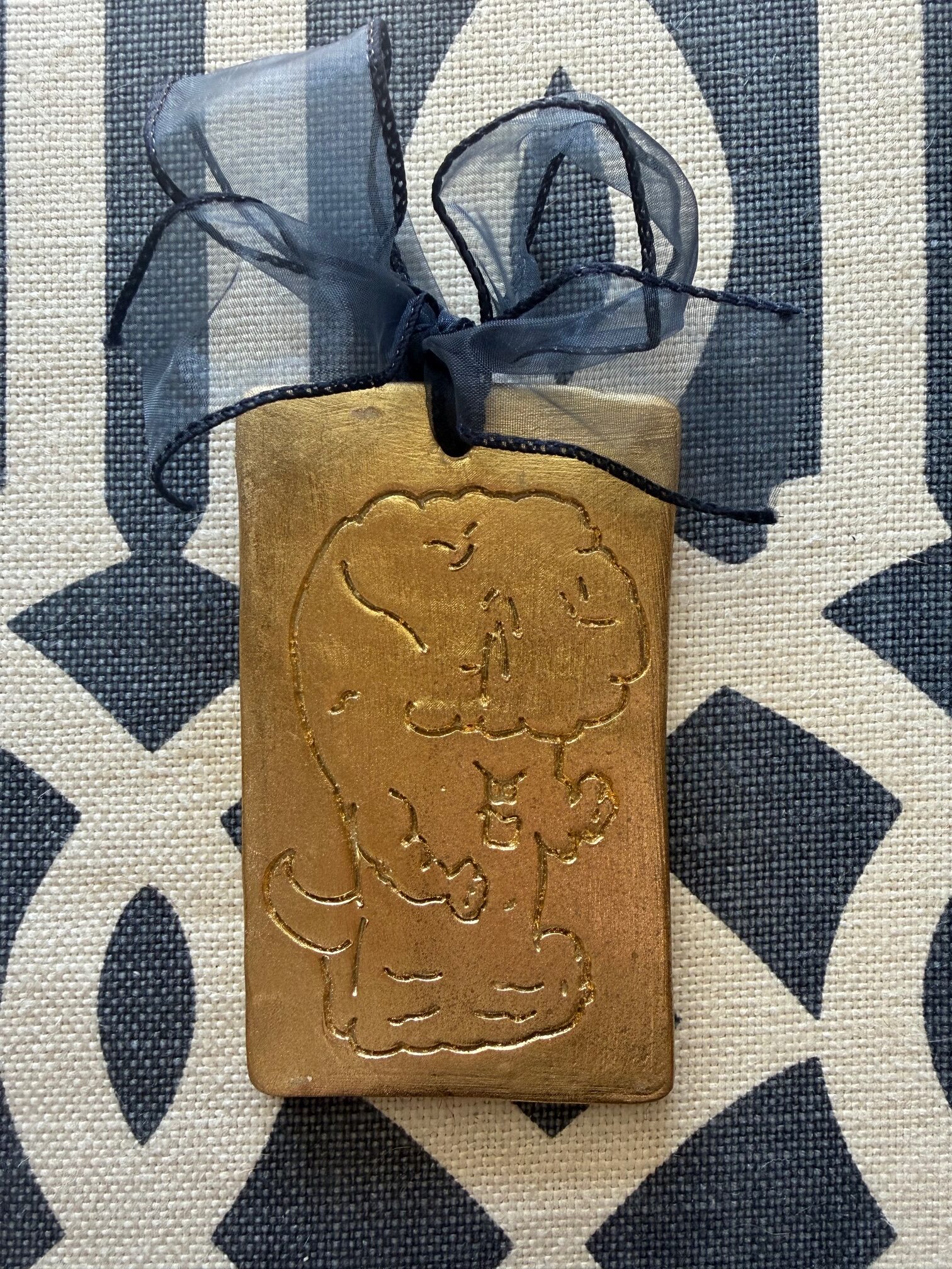 Could also be used as a paperweight. Comes with a stylish navy bow. 3″ x 5″